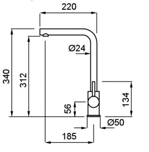 Egykaros modern "L" alakú, kerámiabetétes csaptelep, oldalsó szabályzóval, forgatható kifolyócsővel, normál beépítéssel, O35 mm-es furattal.