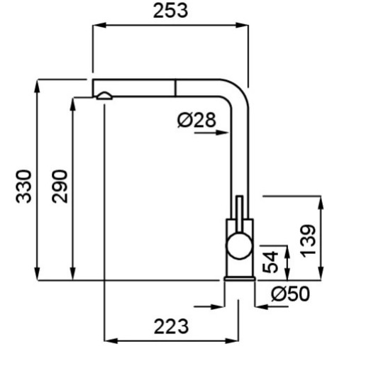 Egykaros modern "L" alakú, kerámiabetétes csaptelep, oldalsó szabályzóval, forgatható kifolyócsővel, kihúzható fejjel, normál beépítéssel, O35 mm-es furattal.