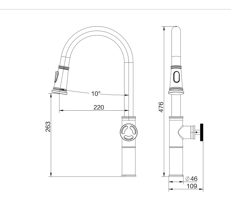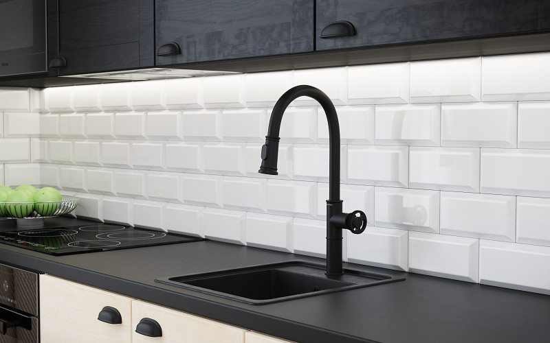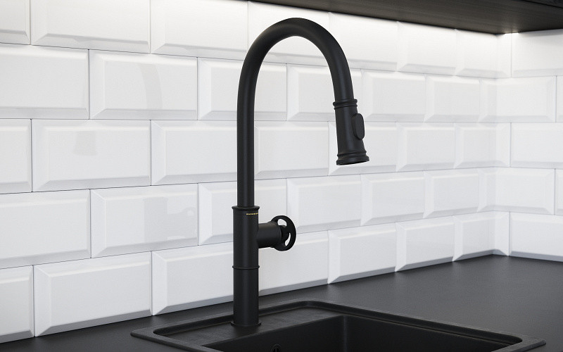 Mosogató csaptelep, Wasserburg Industry kihúzható, álló mosogató csaptelep, fekete 25.050.6B