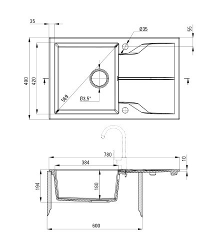Megfordítható mosogató - lehetőség a medence bal vagy jobb oldalra történő felszerelésére