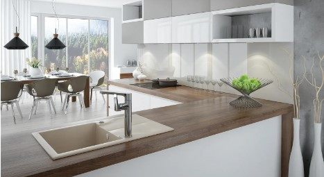 Mosogatógép-csatlakozással ellátott szerelvényekkel felszerelt mosogató