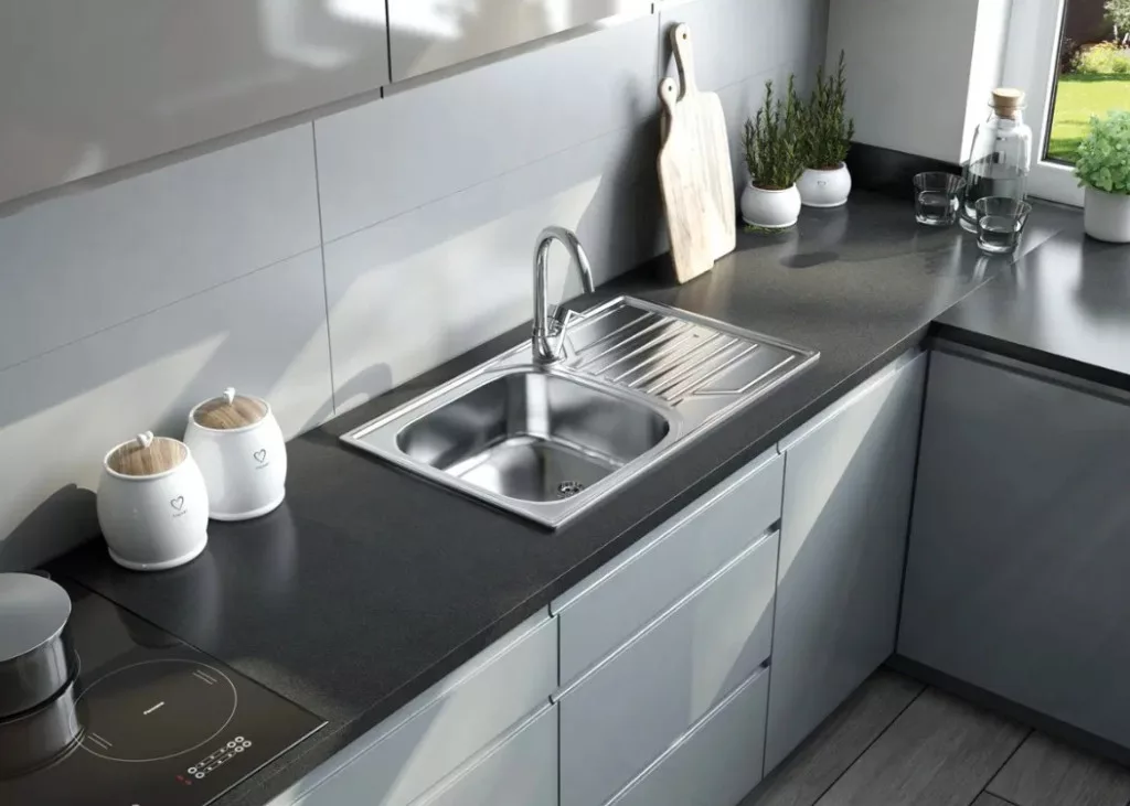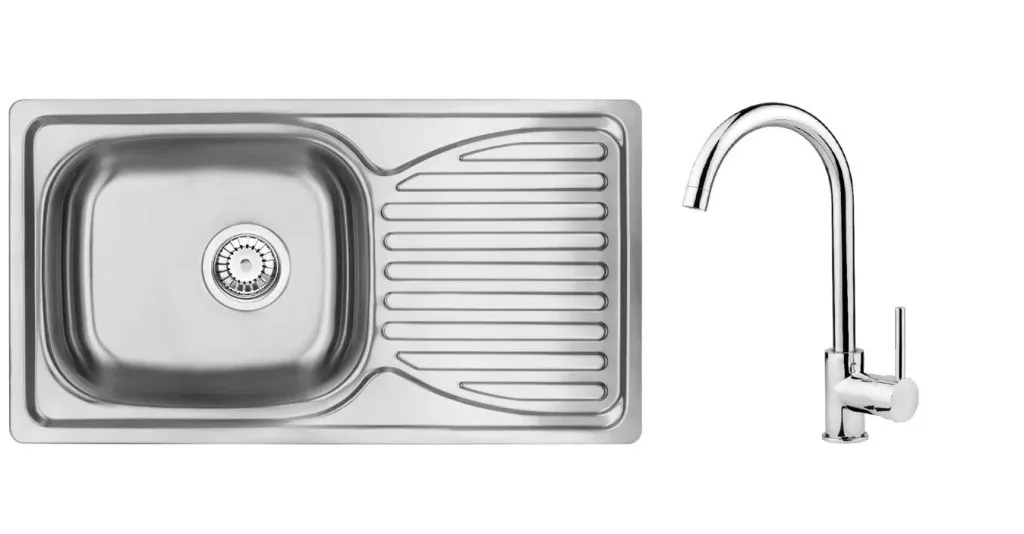 Mosogatótálca, Deante Doppio acél mosogató csapteleppel, 1 medencés csepegtetővel,szatén ZENB0113