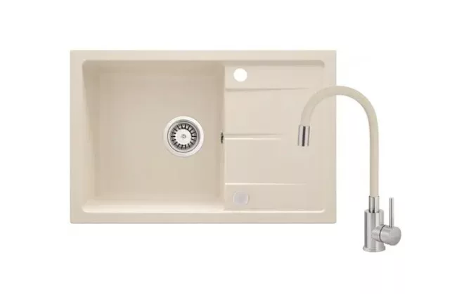 Bézs színű mosogató csapteleppel