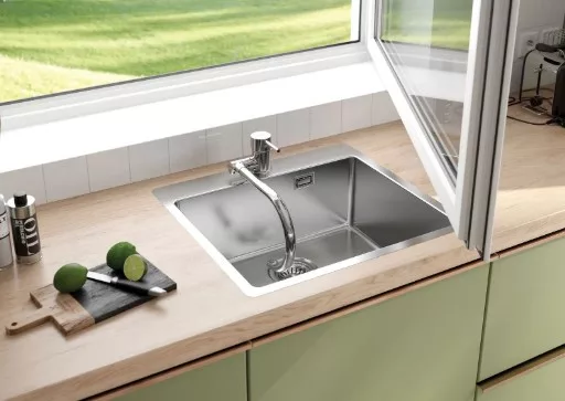 Mosogatógép-csatlakozással ellátott szerelvényekkel felszerelt mosogató