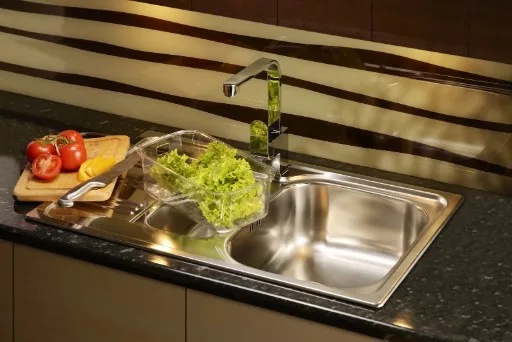 Mosogatógép-csatlakozással ellátott szerelvényekkel felszerelt mosogató