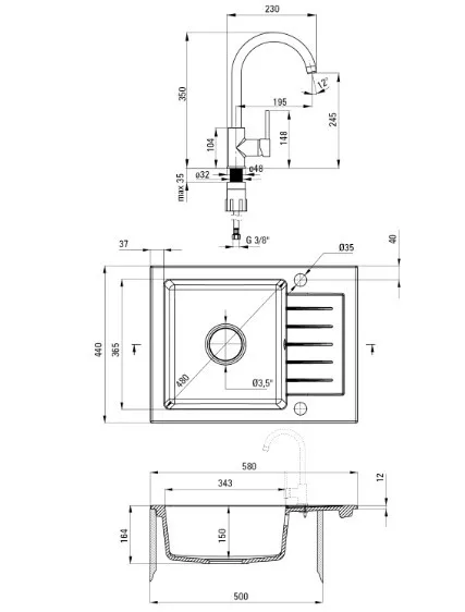 1 medencés, gránit mosogató csepegtetővel, csapteleppel