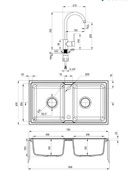2 medencés, gránit mosogató csapteleppel