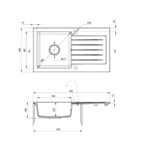 Megfordítható mosogató - lehetőség a medence bal vagy jobb oldalra történő felszerelésére