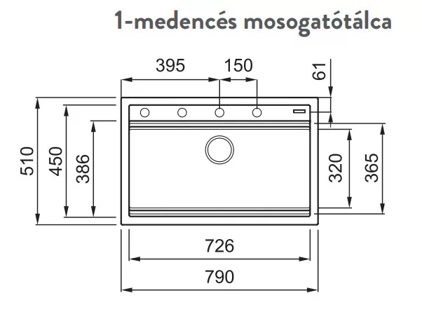 Mosogatótálca mérete: 790x510 mm