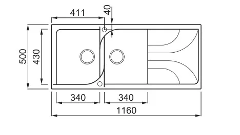 Mosogatótálca mérete: 1160x500 mm