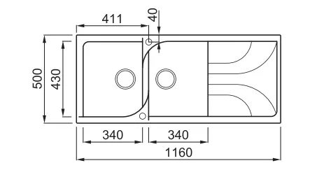 Tartozékok: Helytakarékos szifon, szűrőkosár, rögzítő fülek és Elleci túlfolyó.