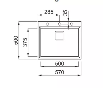 Tartozékok: Helytakarékos szifon, négyzet alakú lefolyó, szögletes túlfolyó és rögzítőfülek