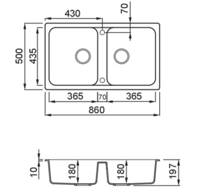Mosogatótálca mérete: 860x500 mm