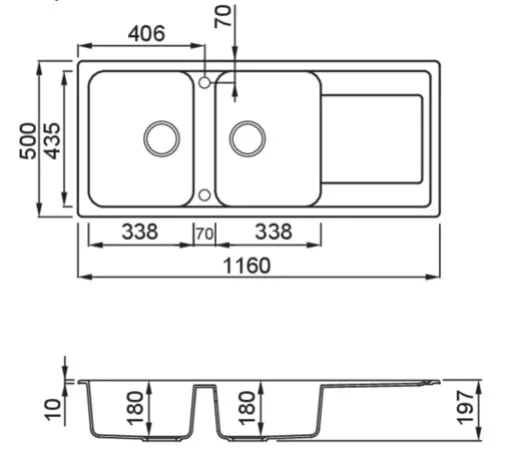 Tartozékok: Helytakarékos szifon, szűrőkosár, rögzítő fülek és Elleci túlfolyó