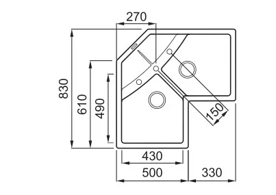 Mosogatótálca, Elleci Mosogatótálca Unico CORNER sarok G40 nero