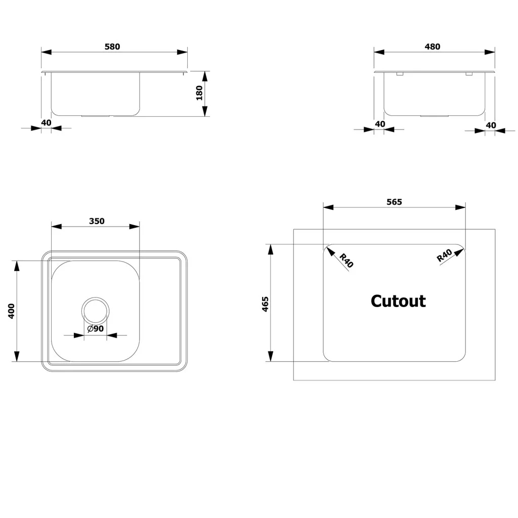 Telepítés: Felülre szerelés A mosogató a munkalapon helyezkedik el, és a széle meghaladja azt.