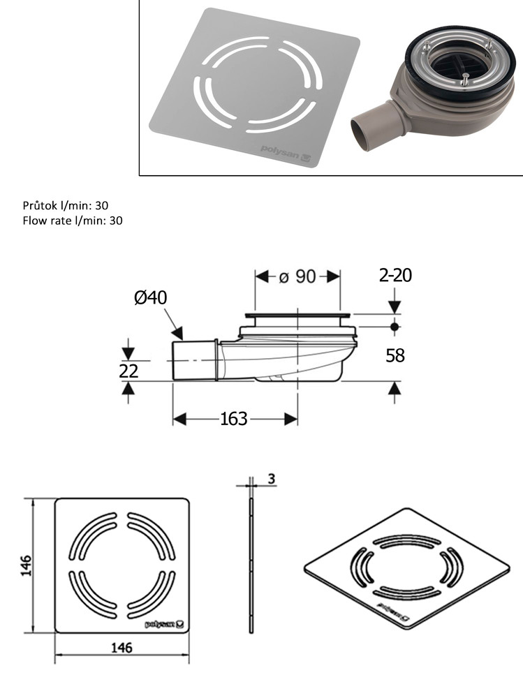 POLYSAN FLEXIA zuhanytálca szifon, DN40 INOX (17731)