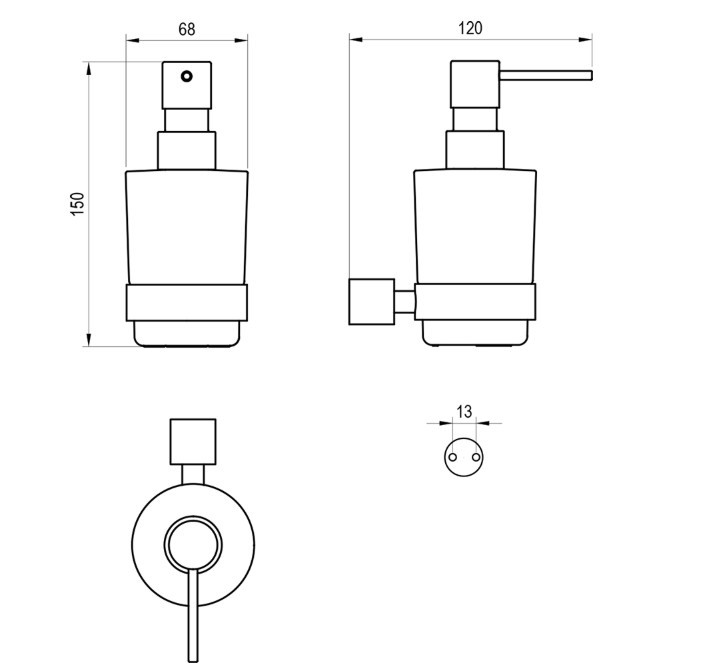 A szappanadagolós tartó két tipli és egy beállító fém rögzítőlemez segítségével kerül felszerelésre.