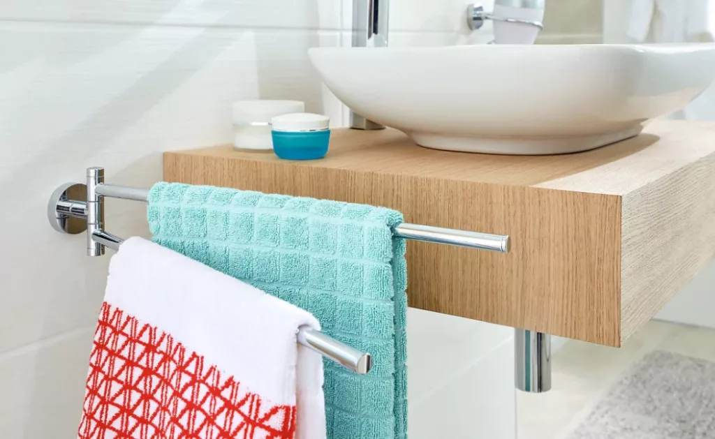 Kétkaros fúrásmentes törölközőtartó, tesa® Power.Kit technológiával (átfogó ragasztós rögzítési megoldás)