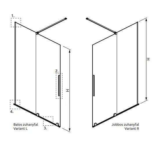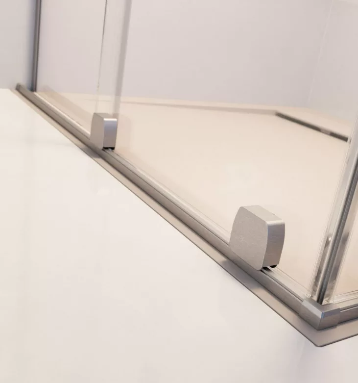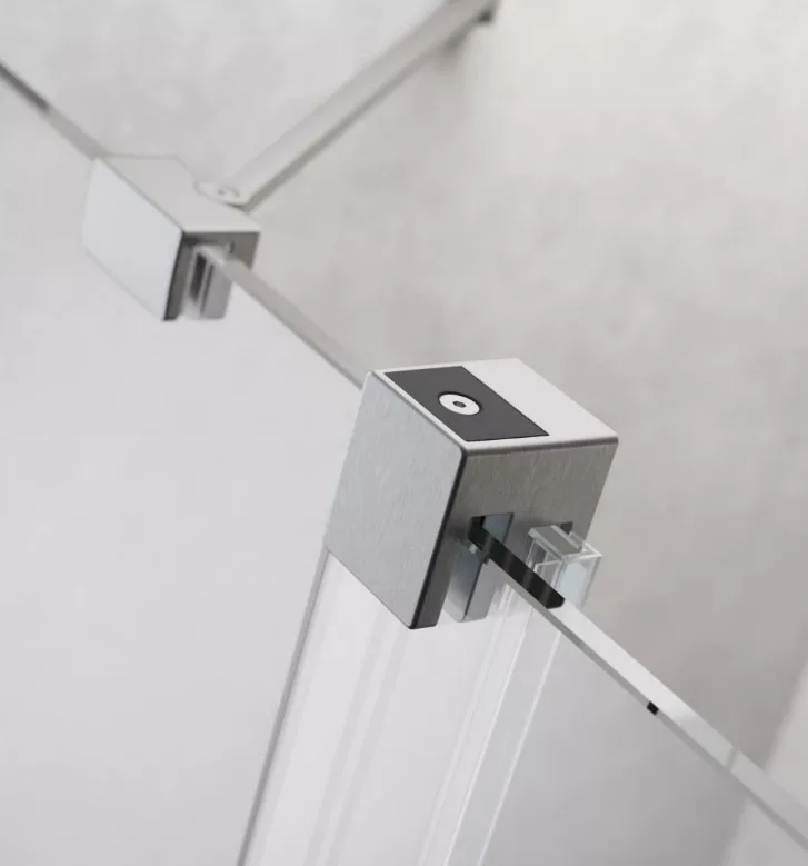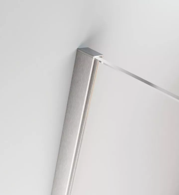 Profillal a falra szerelhető fix pengefal alsógörgős üvegrésszel, szálcsiszolt króm kivitel.