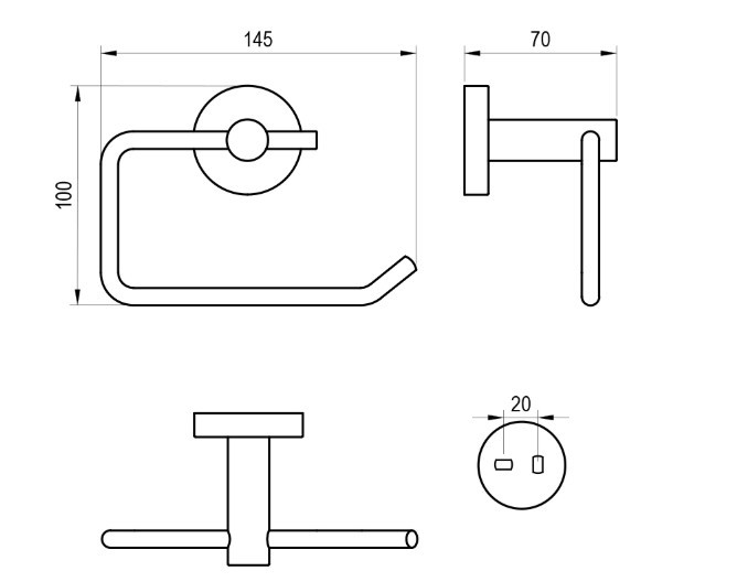 A toalettpapír-tartó két tipli és egy beállító fém rögzítőlemez segítségével kerül felszerelésre.