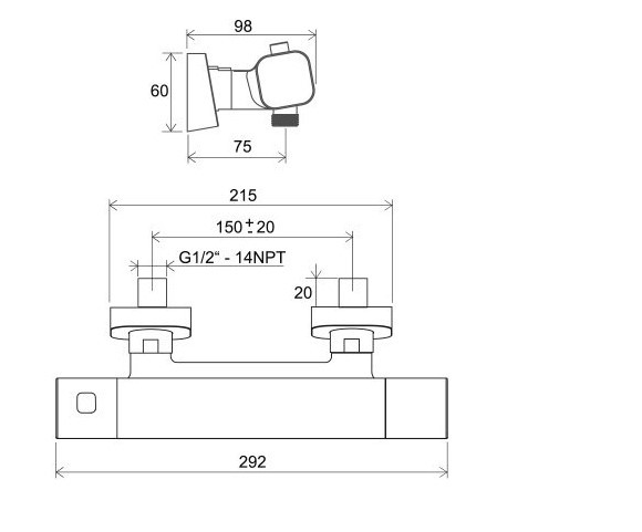 Zuhany csaptelep, Ravak 10° TD F 033.20/150 10° Free black, Termosztátos zuhany csaptelep szett n