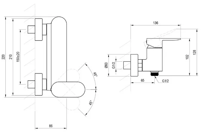 Zuhany csaptelep, Ravak Chrome II CR II 032.00CR szett nélkül, X070452