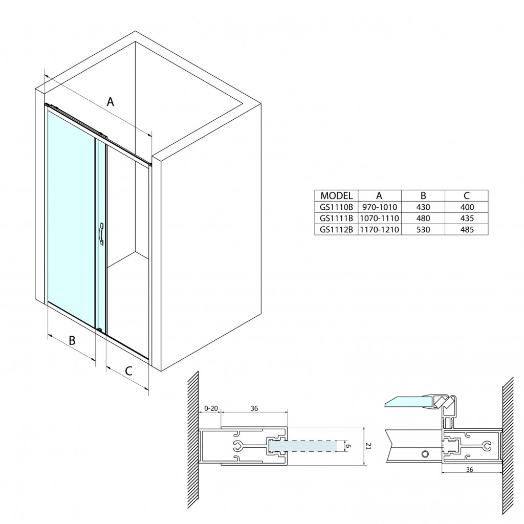Zuhanyajtó, Sapho Gelco SIGMA SIMPLY BLACK tolóajtó, 100 cm fekete GS1110B