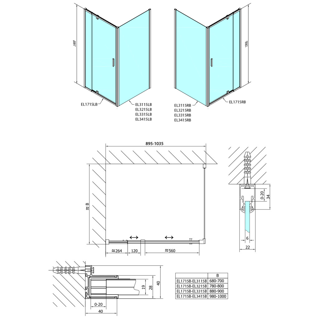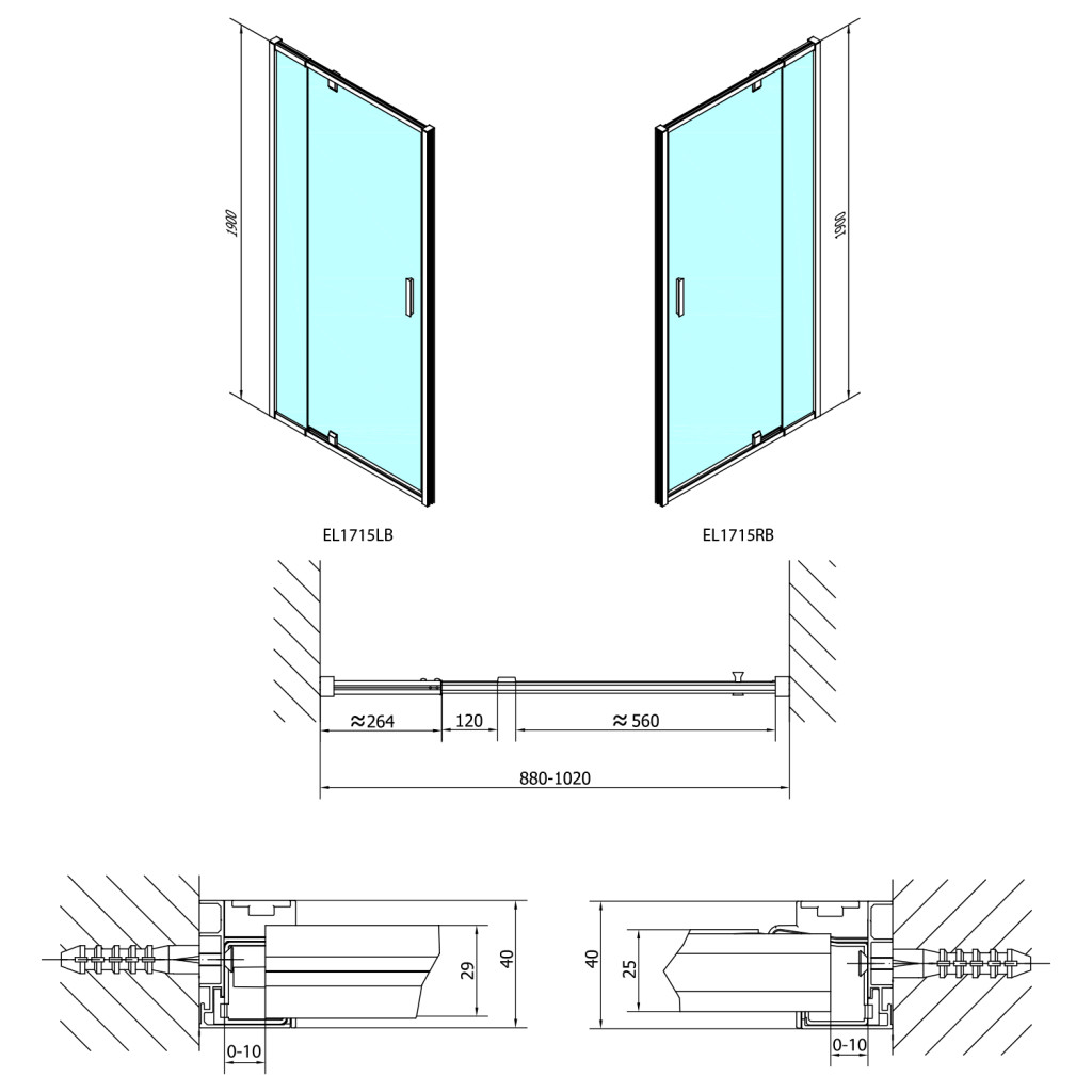 Zuhanyajtó, Sapho Polysan Easy Line Black nyílóajtó fix rész,matt fekete,102 cm EL1715B