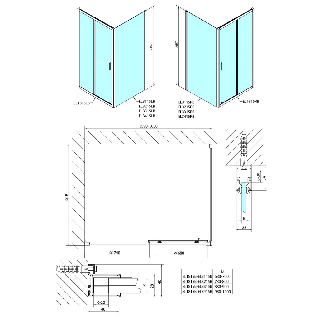 Zuhanyajtó, Sapho Polysan Easy Line Black tolóajtó, matt fekete, átlátszó üveg 160 cm EL1815B