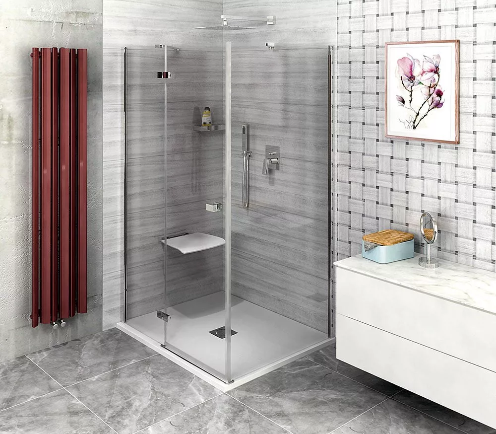 Két zuhanyajtó vagy egy ajtó és egy oldalfal összekapcsolásával téglalap vagy négyzet alakú paravánokat készíthet. A tartozékok között megtalálja a megfelelő típusú oldalfalakat.