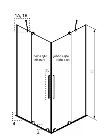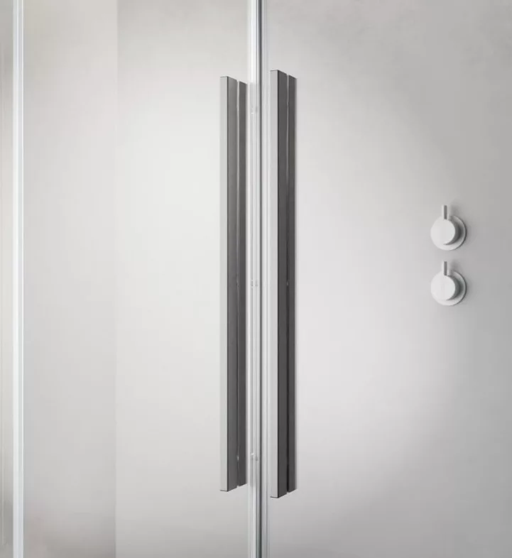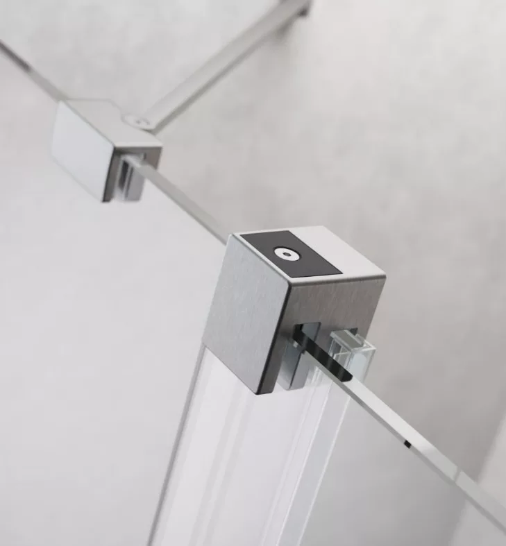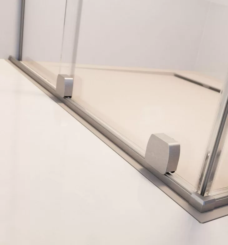 Szögletes zuhanykabin dupla, alsógörgős ajtókkal, szálcsiszolt króm változat.