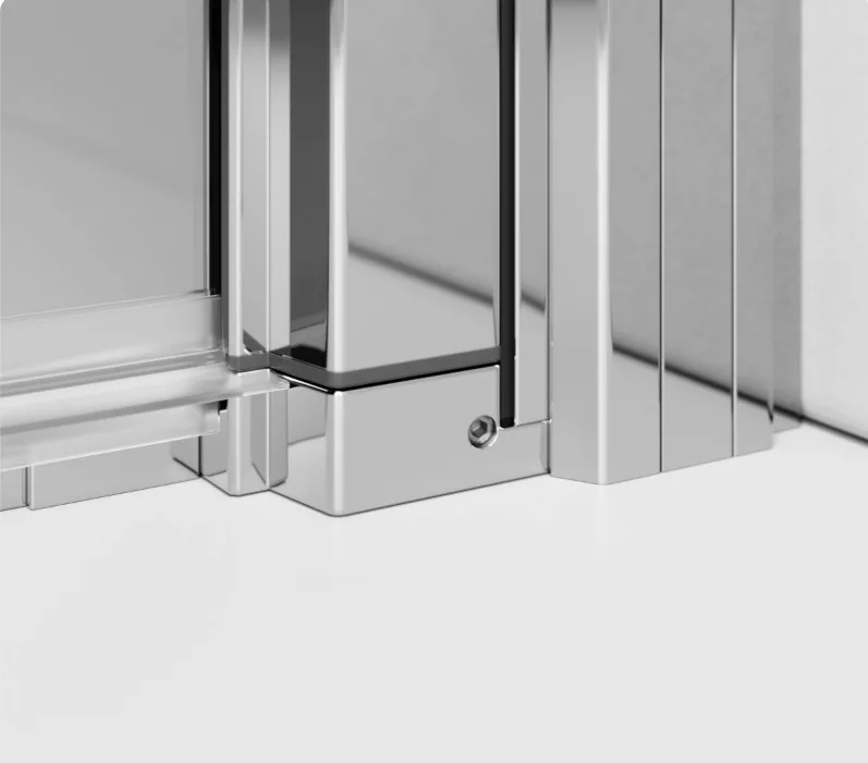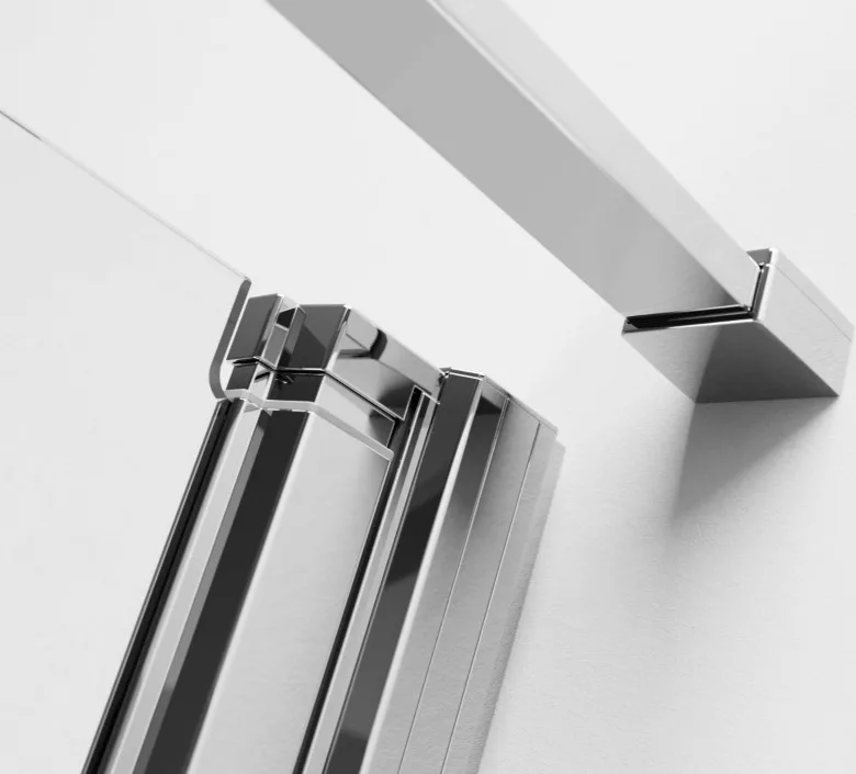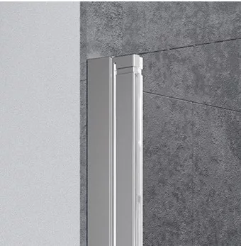 Kifelé-befelé nyíló szögletes zuhanykabin egy fix és egy nyíló oldallal.