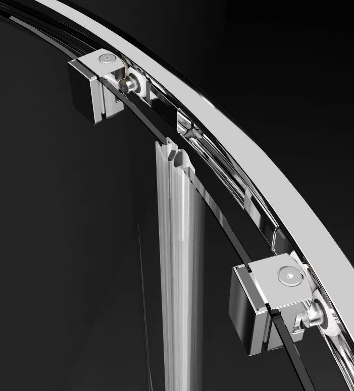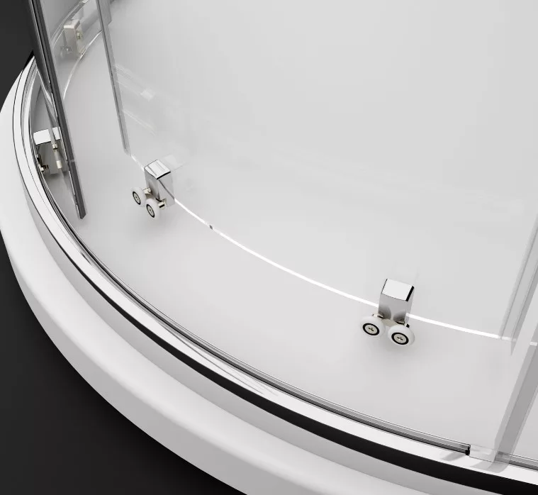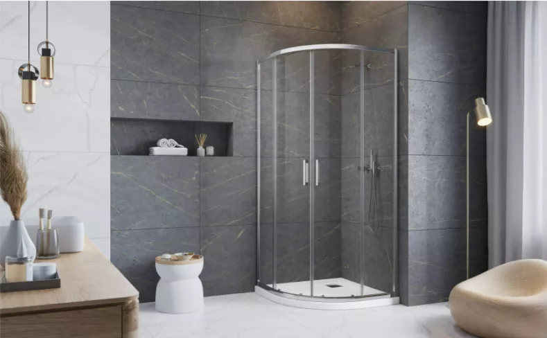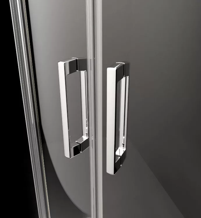 Íves zuhanykabin két fix résszel és dupla tolóajtóval.