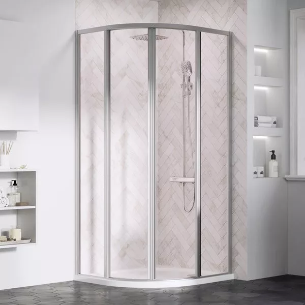 Négyrészes, elcsúsztatható negyedköríves zuhanykabin