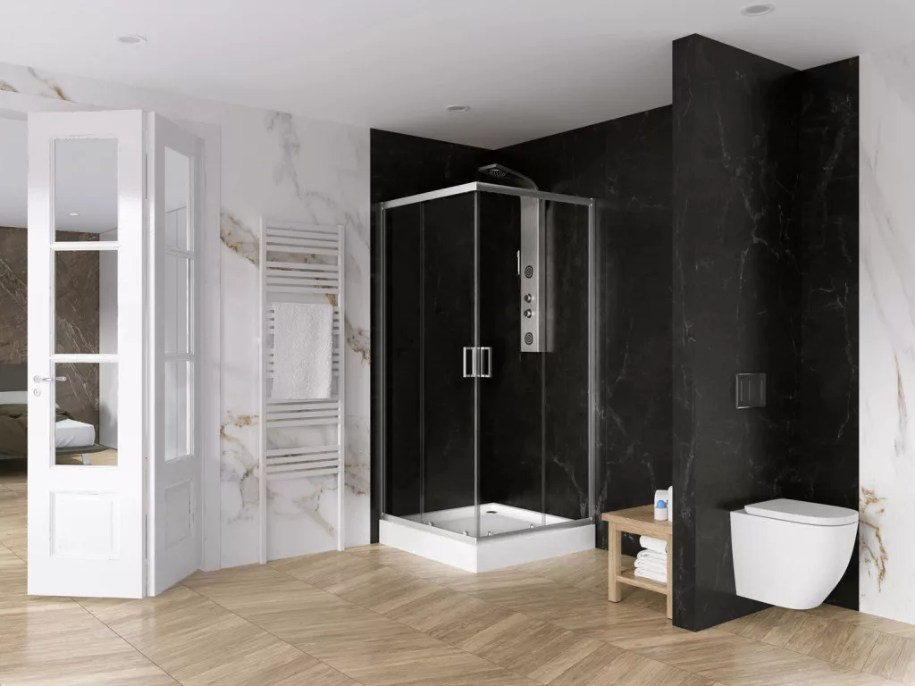 Szögletes zuhanykabin önhordó zuhanytálcával