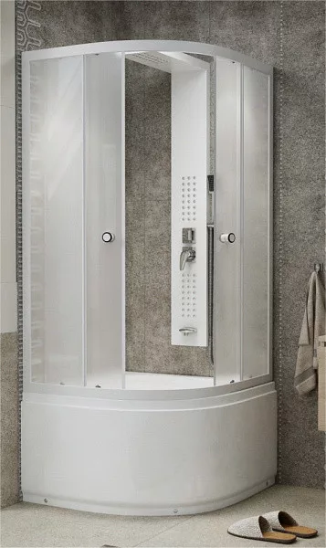 Üvegszál erősítéses, acél merevítésű mély akril zuhanytálca állítható fém lábakkal, beépített ülőkével