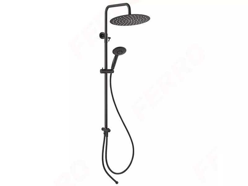 Kézizuhany: 3 funkciós kerek kézizuhany, funkciók: eső/ masszázs / vegyes, műanyag zuhanyrúdon a kézizuhany magassága állítható, Ferro Easy Clean System a vízkőlerakódás könnyű eltávolításához, PVC zuhanycső hossza: 150 cm