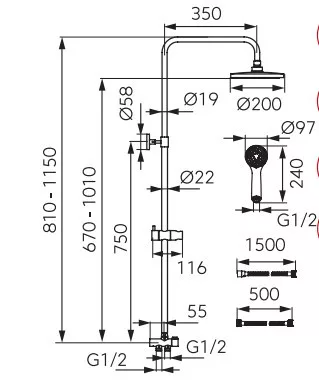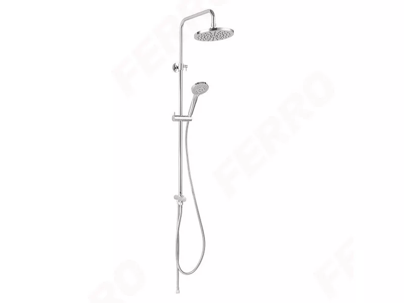 Fejzuhany: zuhanyrúd hossza 81 115 cm között állítható, állítható szerelési magasság, műanyag fejzuhany átmérője: O 20 cm, állítható dőlésszögű fejzuhany, Ferro Easy Clean System a vízkőlerakódás könnyű eltávolításához