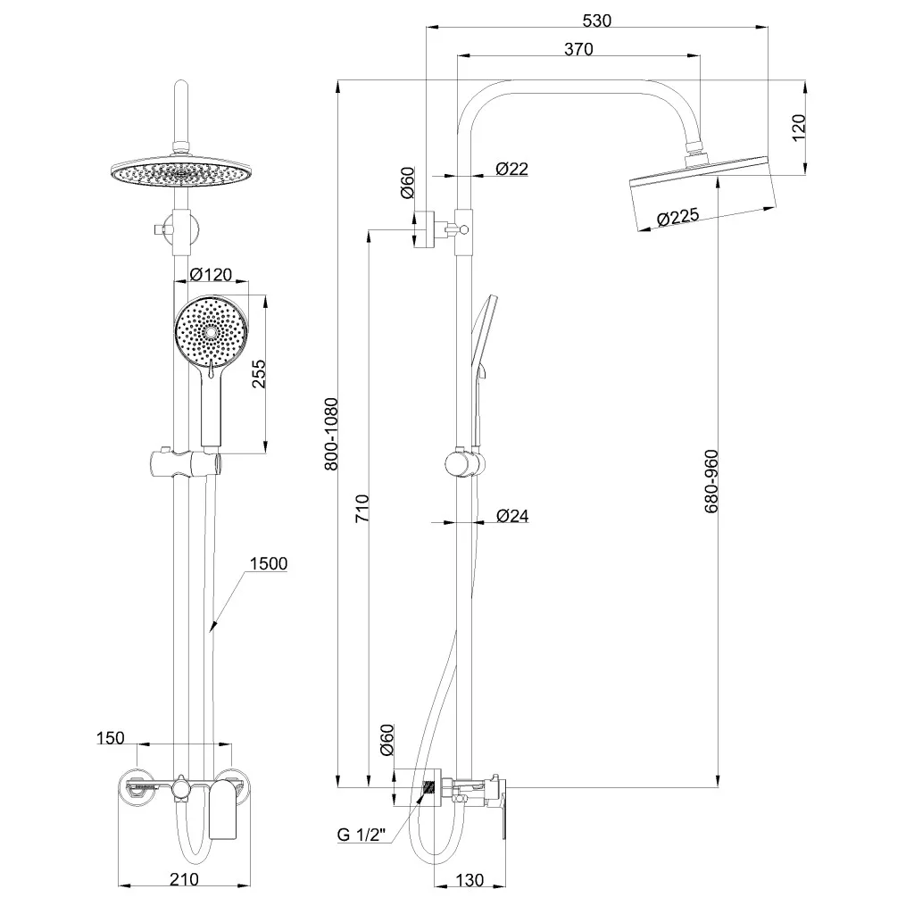 Zuhanyszett, Invena Rikia zuhanyszett zuhany csapteleppel, fekete AU-24-B04-G