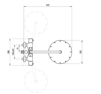 Kivitelezés: rögzített zuhanyfej 25 cm-es négyzet alakú; kézi zuhanyfej - 1 funkcióval rendelkezik, a rögzített zuhanyfej oldalsó irányba is fordítható