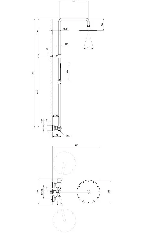 kivitelezés: rögzített zuhanyfej 25 cm-es négyzet alakú; kézi zuhanyfej - 1 funkcióval rendelkezik, a rögzített zuhanyfej oldalsó irányba is fordítható