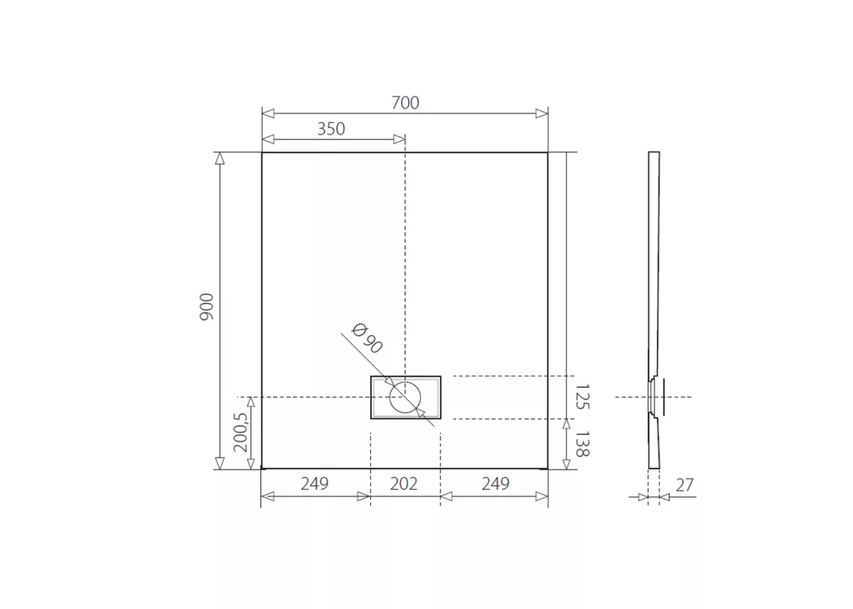 Zuhanytálca, Aquatek SMC Rock szögletes zuhanytálca 90x70