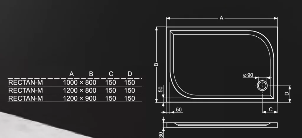 Zuhanytálca, Roltechnik Rectan-M 120x80 szögletes :RT