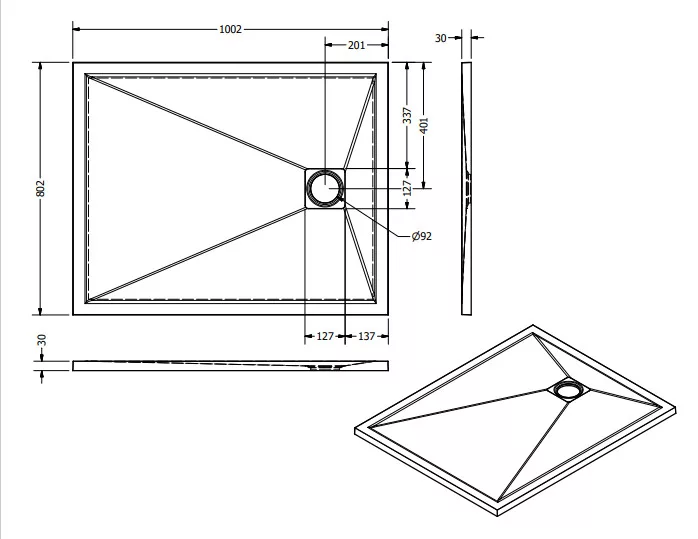 Zuhanytálca formája: