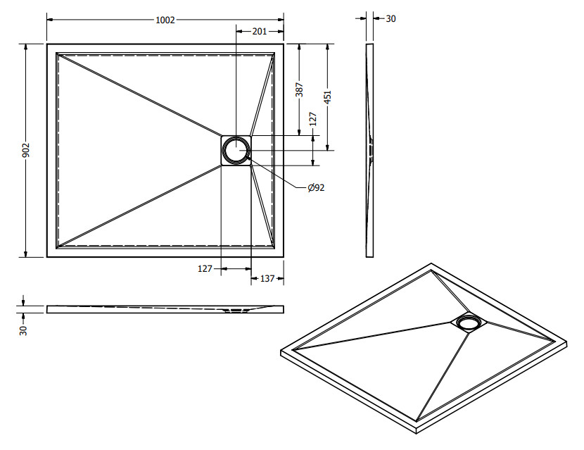 Zuhanytálca, West Eliza 90x100 cm, fehér