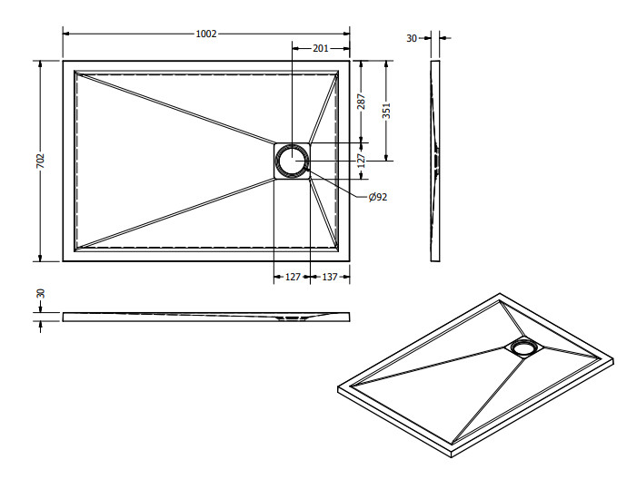 Zuhanytálca formája: