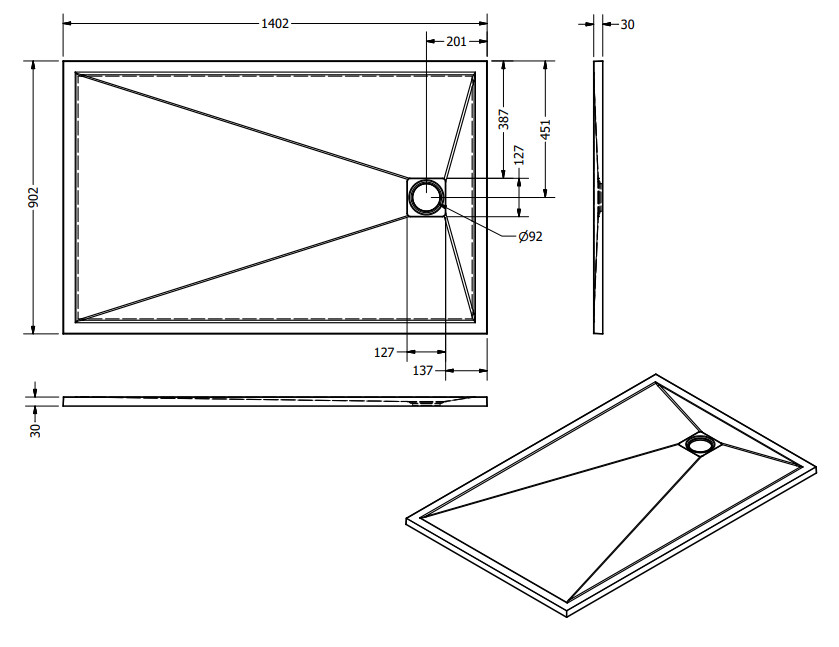 Zuhanytálca formája: